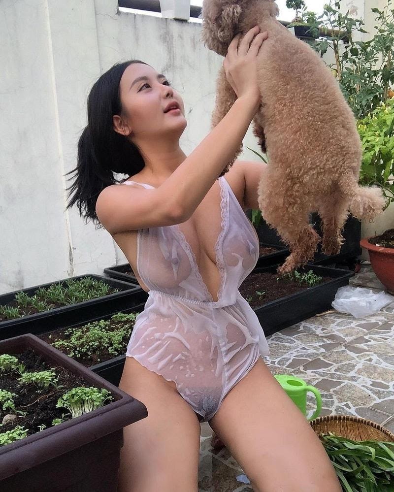 Người mẫu Pong Kyubi lại một lần nữa khiến cộng đồng mạng dậy sóng khi đăng tải lên facebook bộ ảnh diện áo mỏng tanh chụp hình tại chuồng gà.